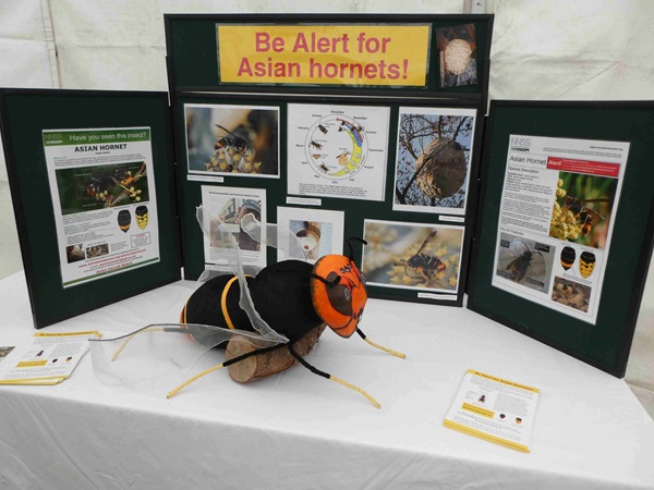 Our final display was the Asian Hornet Information stand. This non-native species is not yet established in mainland Britain, but beekeepers and public alike need to be aware of the dangers it poses. Free identification cards were available.
