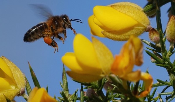 Ivy growing into the hive and old honey oozing out of the entrance.